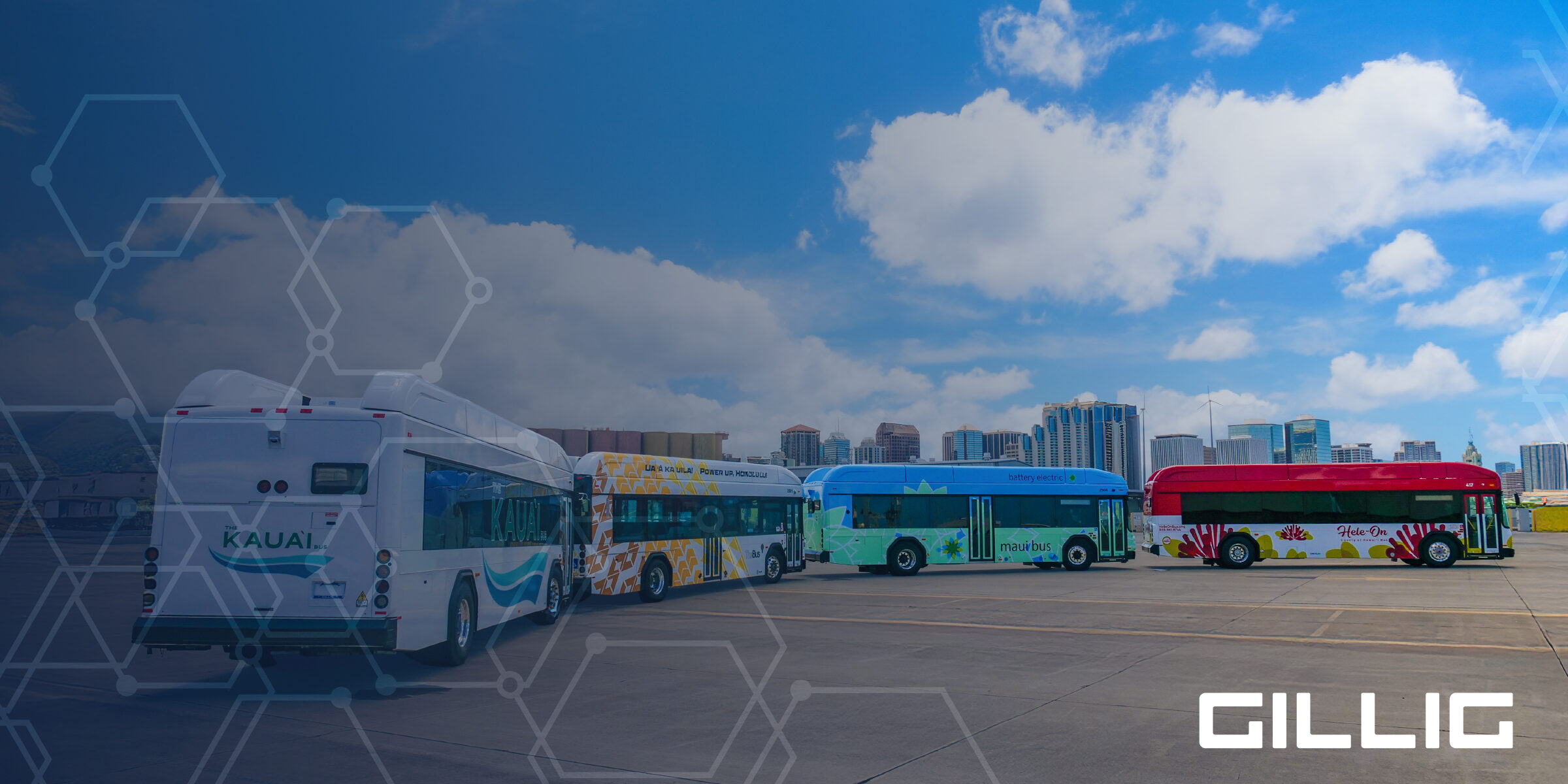 The zero-emission vehicles were manufactured by GILLIG and delivered through a partnership with the Hawai‘i Department of Transportation.